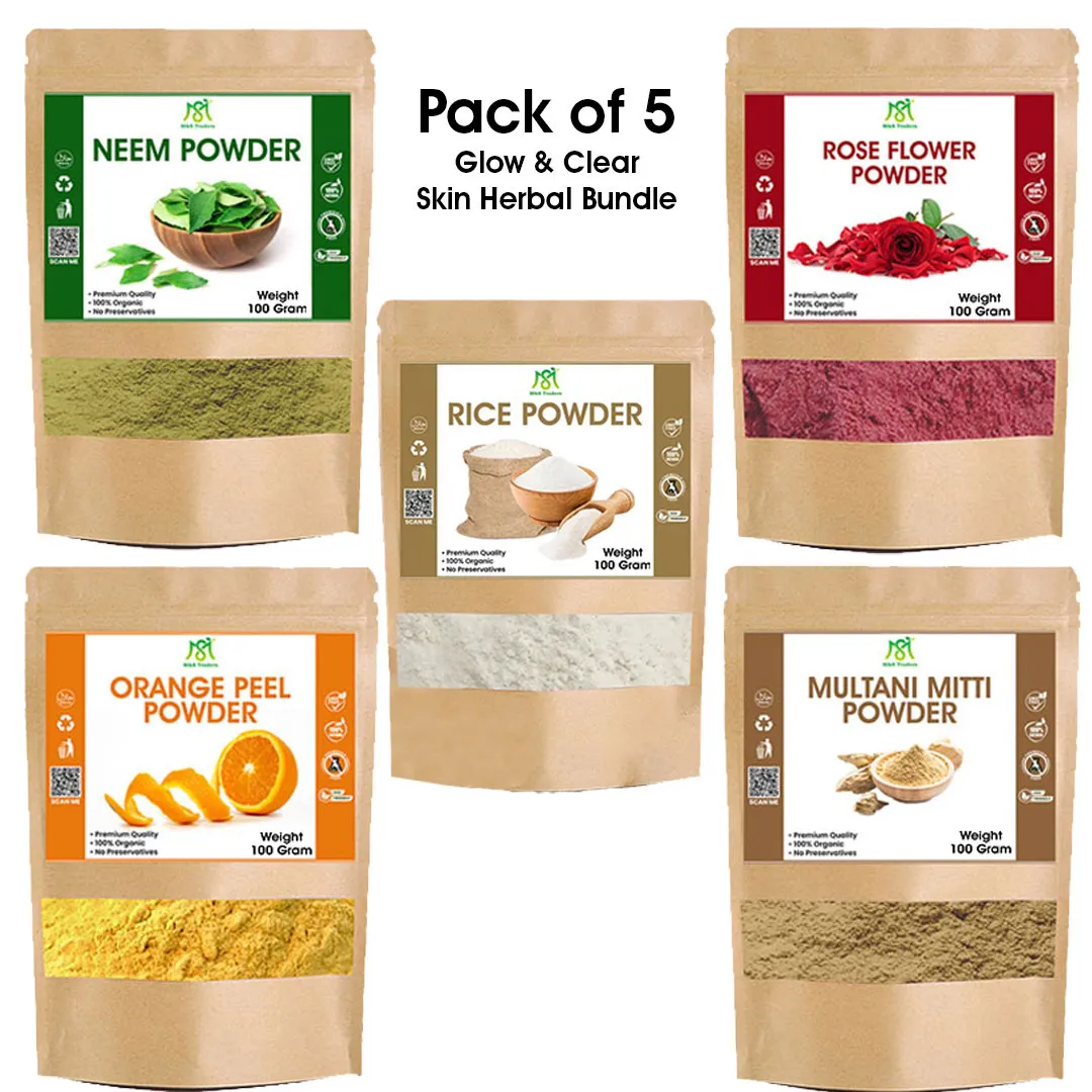 Pack of 5 Orange Peel Powder + Neem Powder + Rose Powder +Multani Mitti + Rice Powder for skin M&S Traders